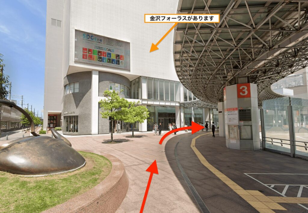 - 道順2「金沢フォーラス」の前にて右折します
