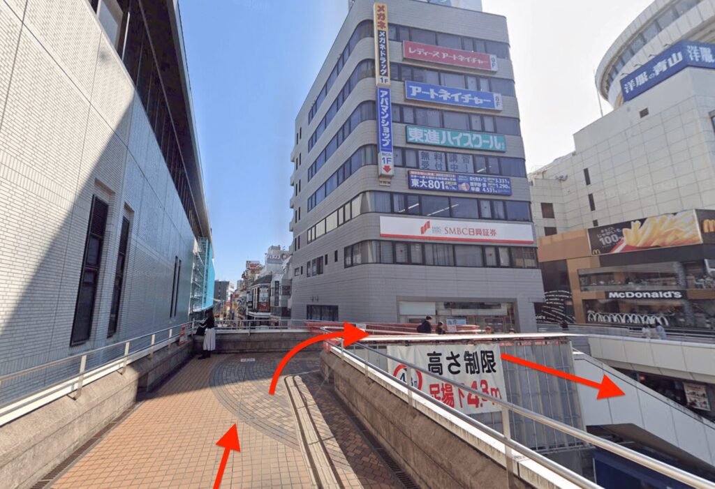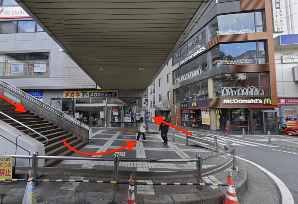 階段を降りたら「メガネドラック」と「マクドナルド」の間の道を進みます