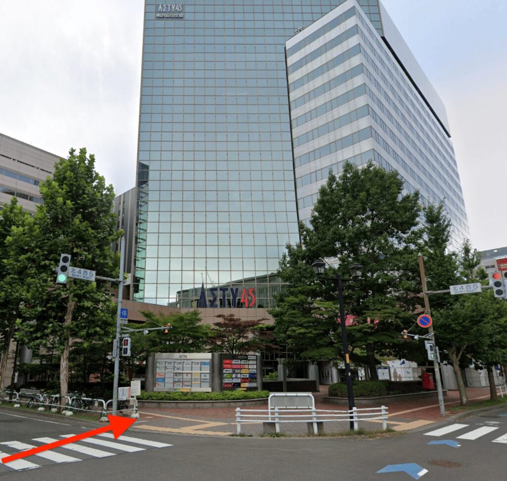 渡った先に「アスティ45」があり6階にクリニックを構えています
