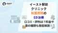 なお、イースト駅前クリニックではAGA治療にも定評があります。AGA治療についてはイースト駅前クリニックの口コミ・評判解説記事にまとめていますので気になる方はチェックしてみてください。
