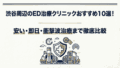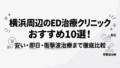 ED治療薬と比較すると費用は高額になりますが、長期的に見て薬代がかからなくなるのと根本改善を目指せるのがメリットです。新宿周辺では西新宿杉江中央クリニック、Dクリニック、メンズライフクリニックなどが対応しています。