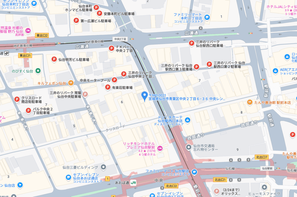 - メンズライフクリニック宮城・仙台院周辺の駐車場情報