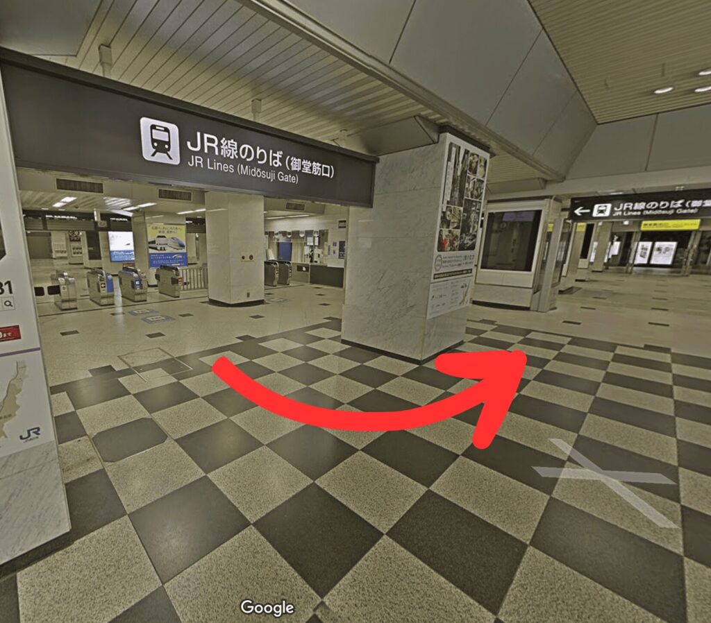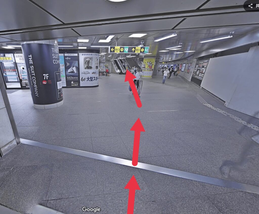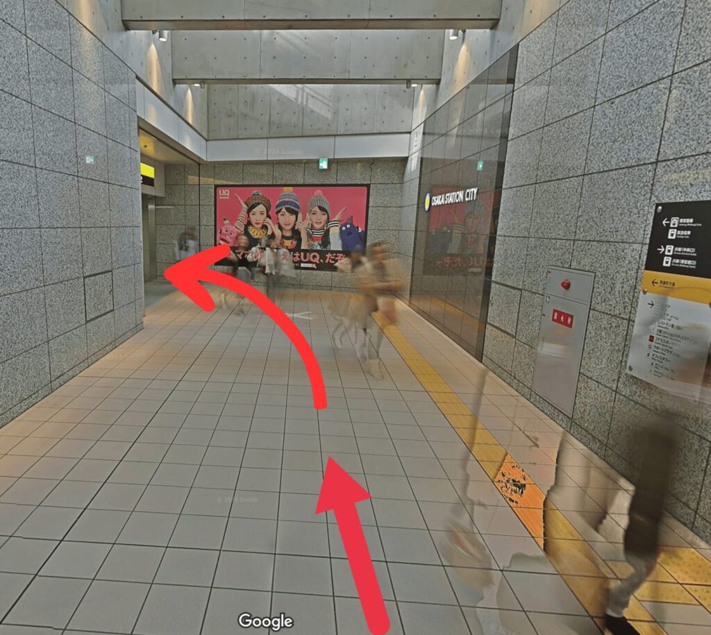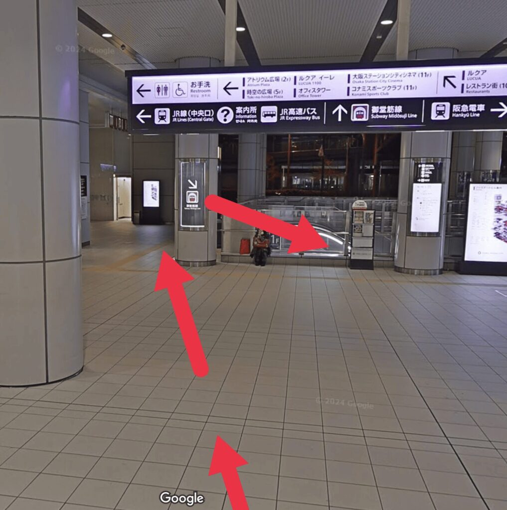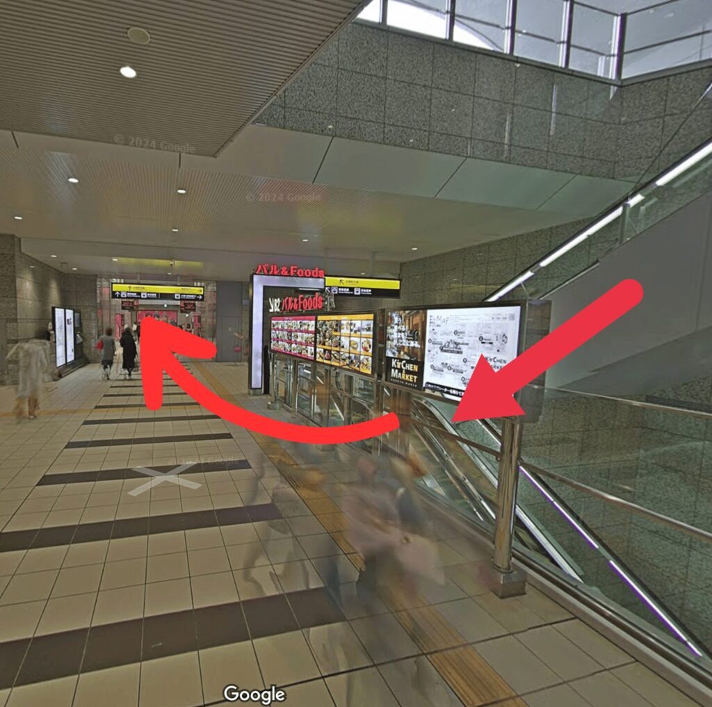 - 道順5直進し「ヨドバシカメラ」の右手にあるエスカレーターで地上に上がります