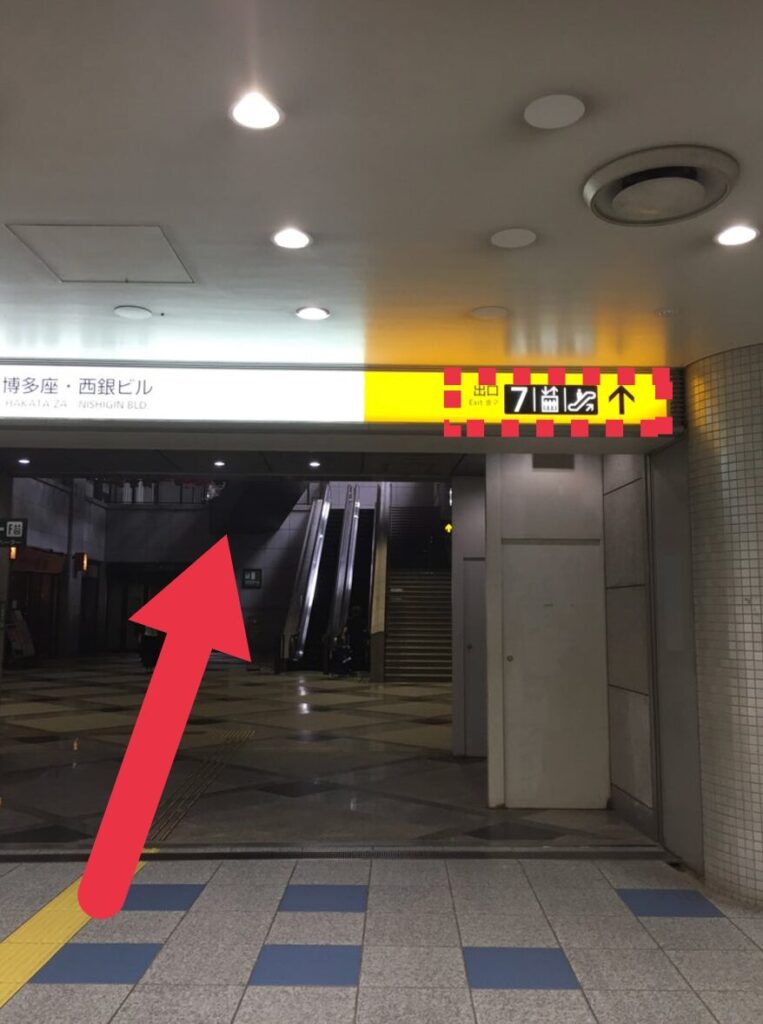 「地下鉄中洲川端駅」の「川端改札口」を出たら「7番出口」へ向かいます。