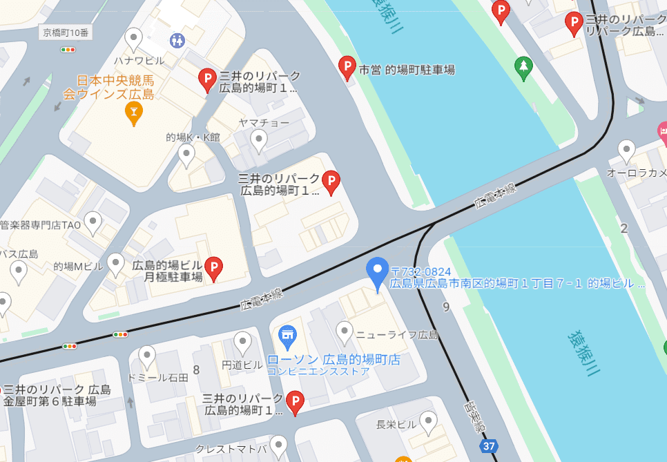 〒732-0824 広島県広島市南区的場町1丁目7−1 的場ビル 2階コチラ