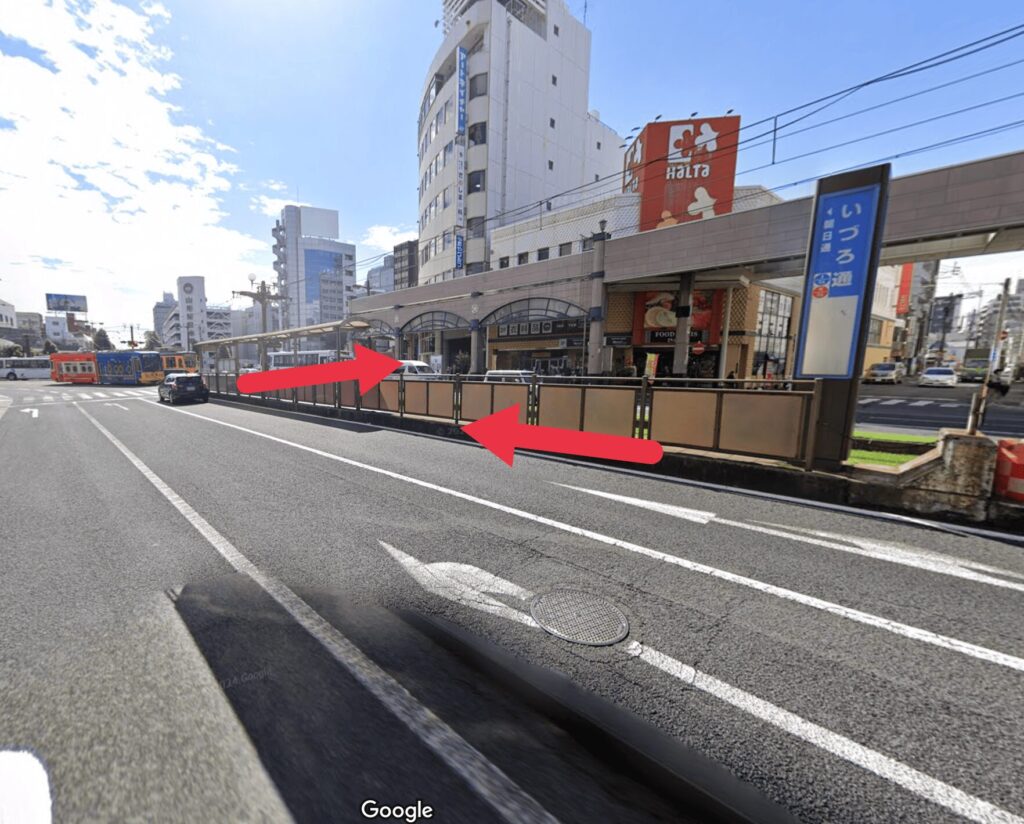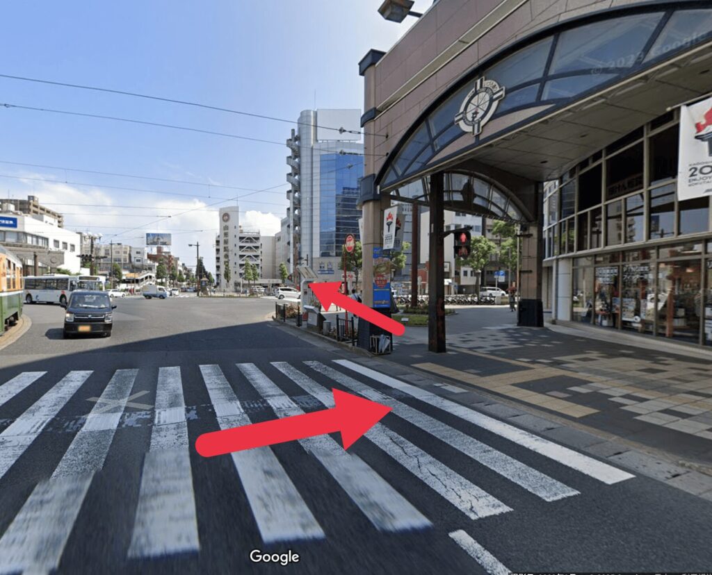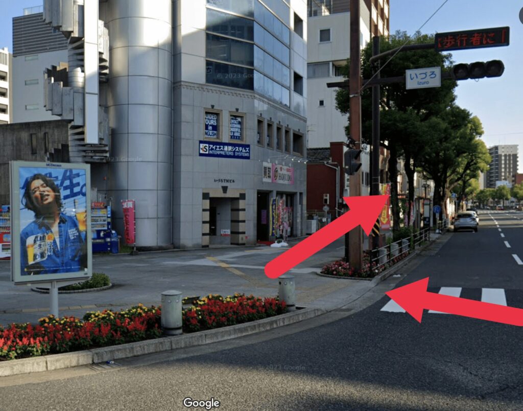 - 道順1「いづろ通駅」降車後、横断歩道を右手側へ渡ります