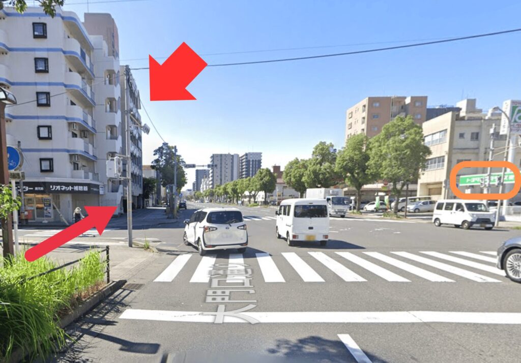 - 道順2歩道に渡ったら左折し交差点を反対側へ渡ります