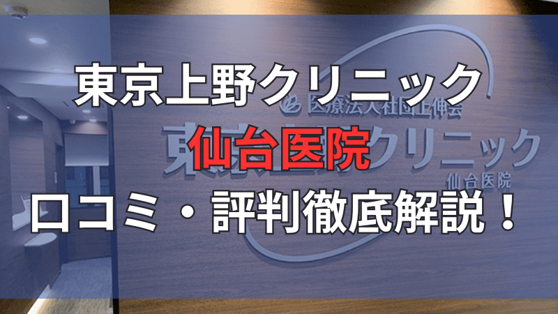 以下では口コミや評判をより詳しくお伝えしていきます。東京上野クリニック仙台医院に診てもらおうか悩んでいる人の助けになれば幸いです。